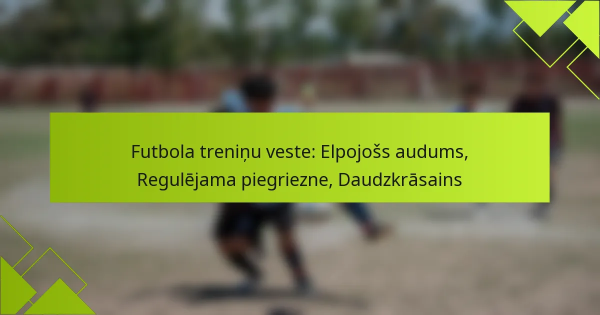 Pareizo futbola treniņu vestu izvēle ietver tādu faktoru apsvēršanu kā elpojamība, regulējamība, krāsu iespējas un izturība. Šie elementi nodrošina komfortu un redzamību treniņu laikā, pielāgojoties dažādām vecuma grupām un vēlmēm.